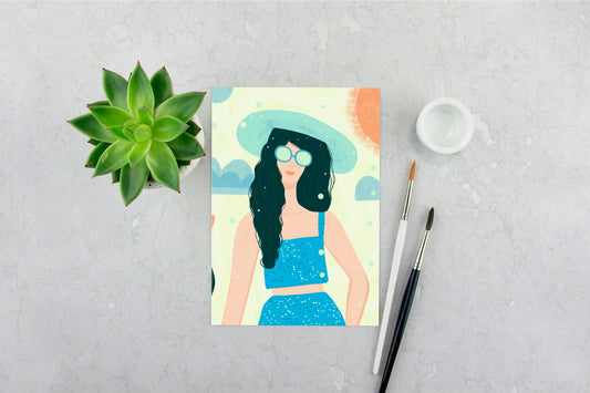 Girl in Blue Shirt Print