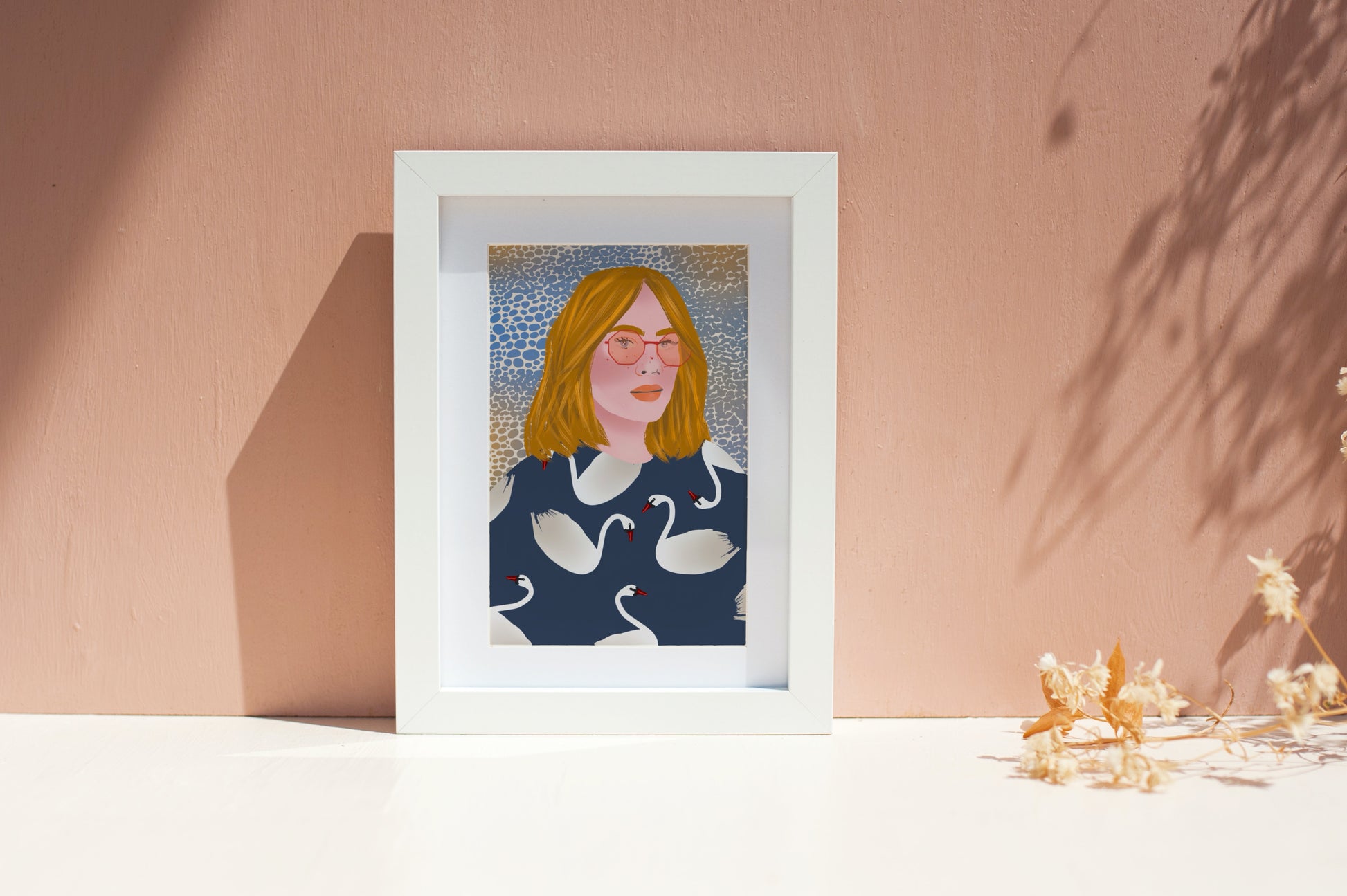 Girl with Swan Jumper illustration printed on beautiful and tick 300 gsm matte paper. They are available in a square size of A5 (14.8cmx21cm). Unframed.